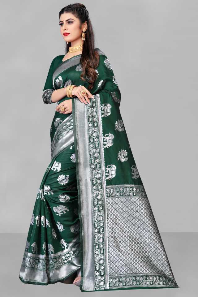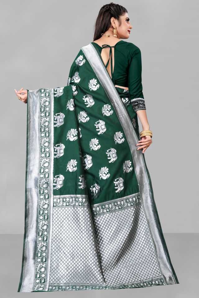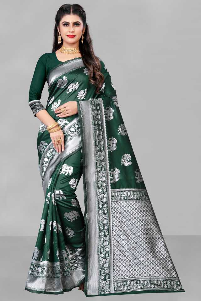 Mfills Bhagya Laxmi presents a beautifully designed Banarasi silk woven saree. This saree comes with an art silk embroidered blouse piece. The work, design, and fabric of this sari gives an elegant and classy look to you. Wear it on any occasion & pair it with a matching accessory to get a compliment for your impressive choice. Pack Contains 1 Saree, 1 Un-stitched Blouse