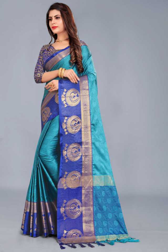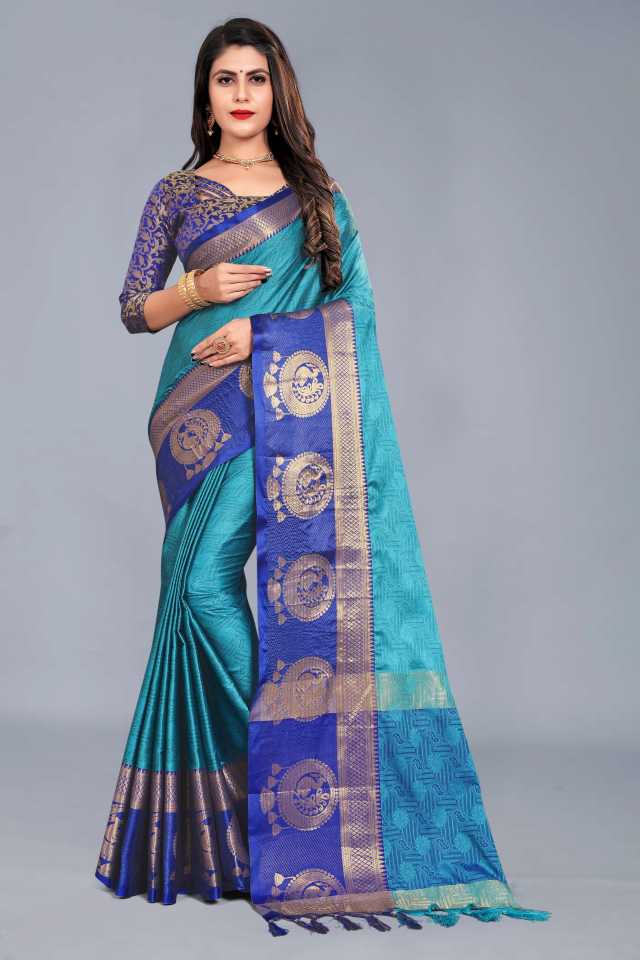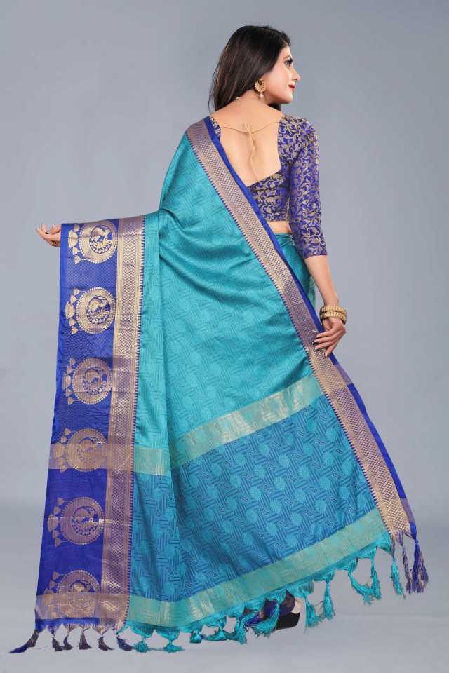 Mfills Bhagya Laxmi presents a beautifully designed Banarasi silk woven saree. This saree comes with an art silk embroidered blouse piece. The work, design, and fabric of this sari gives an elegant and classy look to you. Wear it on any occasion & pair it with a matching accessory to get a compliment for your impressive choice.