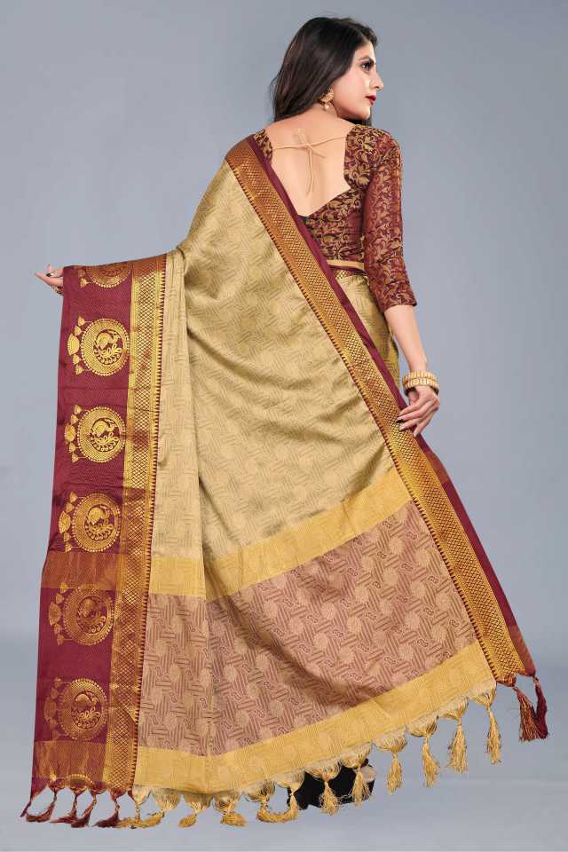 Mfills Bhagya Laxmi presents a beautifully designed Banarasi silk woven saree. This saree comes with an art silk embroidered blouse piece. The work, design, and fabric of this sari gives an elegant and classy look to you. Wear it on any occasion & pair it with a matching accessory to get a compliment for your impressive choice.